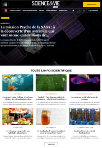A travers son site internet, Science & Vie décrypte et vous dévoile les derniers sujets santé, environnement, espace, techno et met l’accent également sur l’actu à chaud avec l’info du jour ou l’info du ciel.